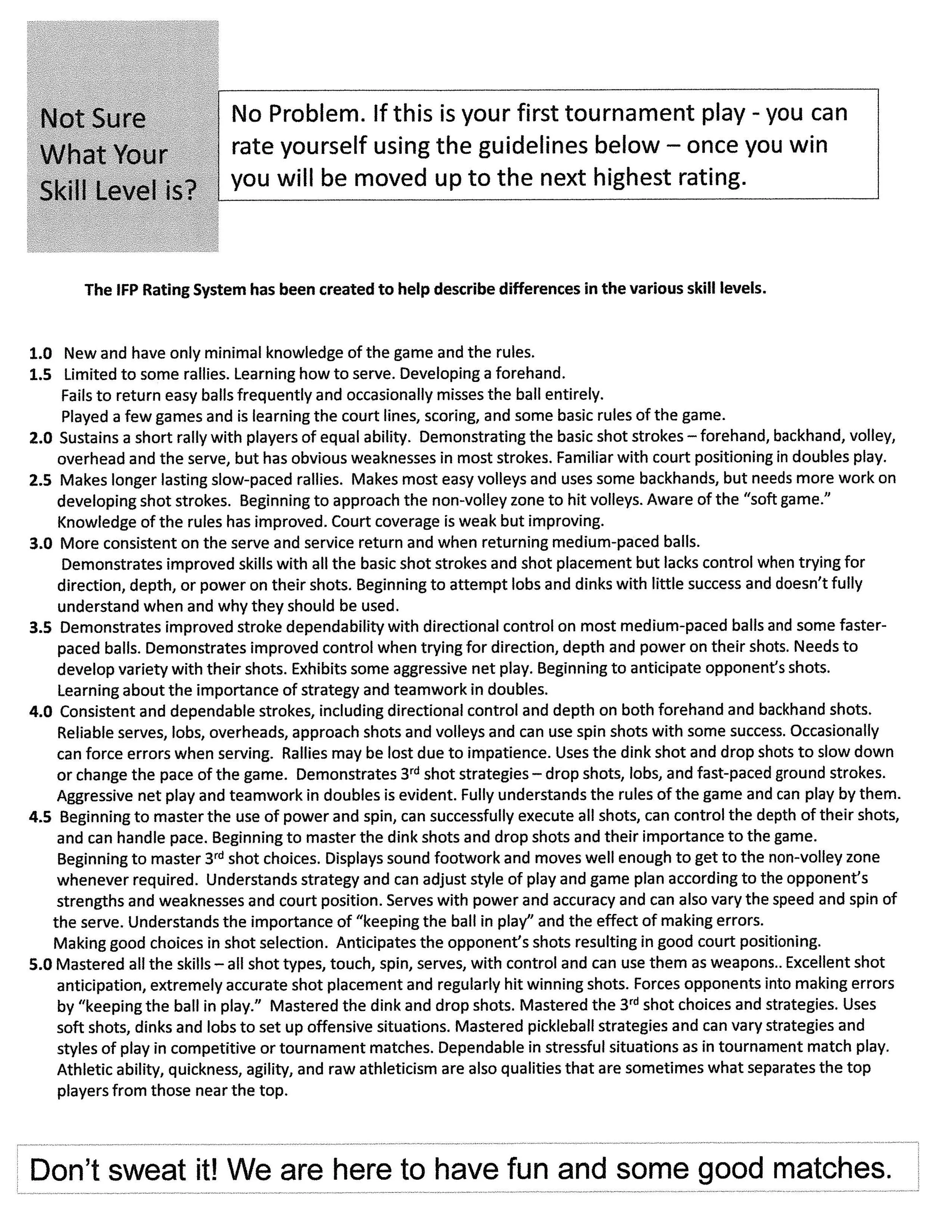 Pickleball Rating Skill Level System Ccc Foundation Inc